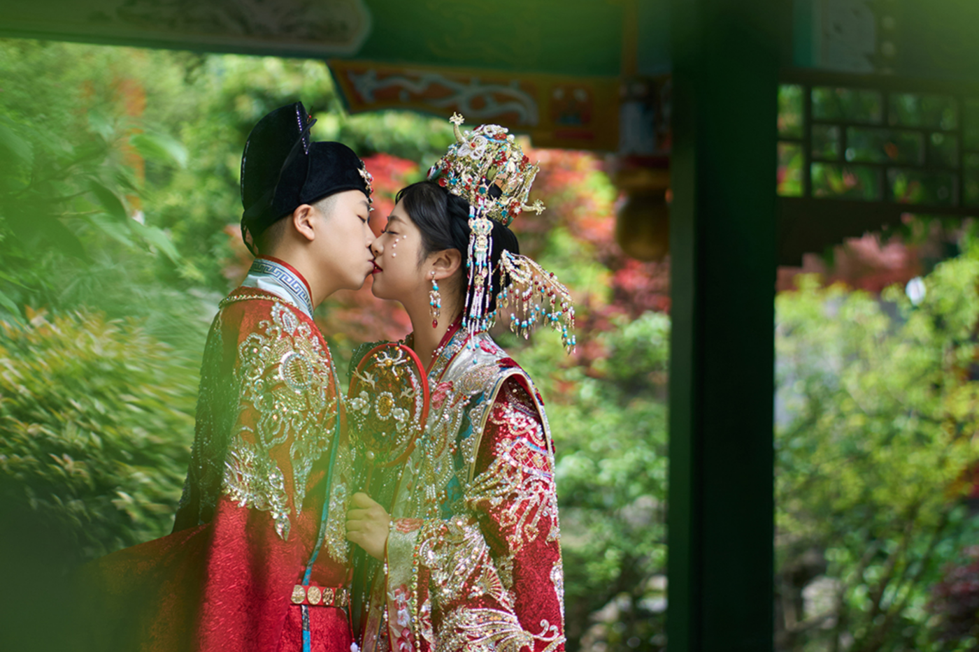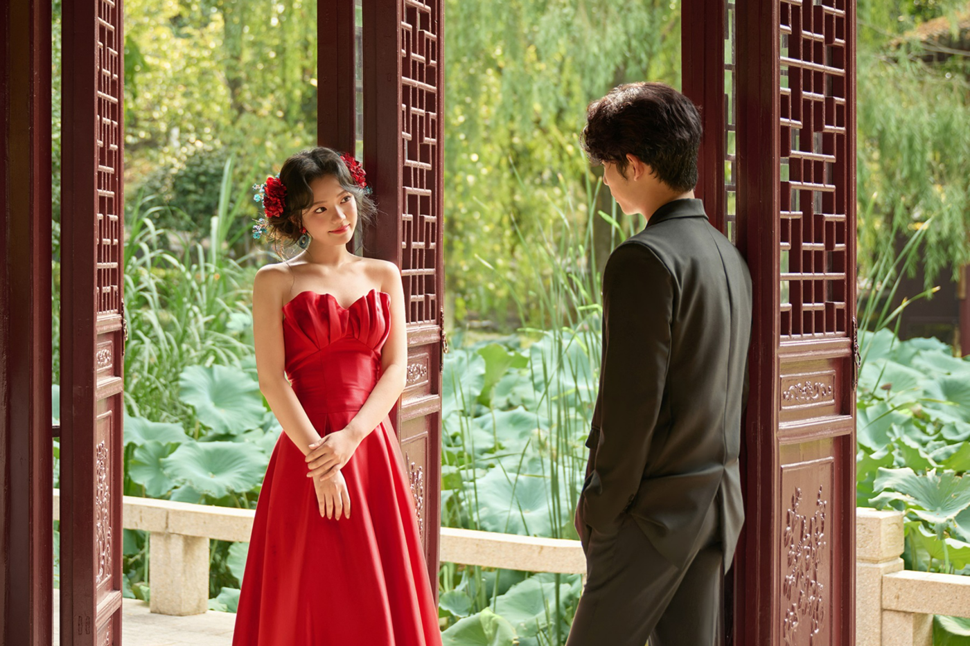 园林里,亭台楼阁、曲径通幽, 每一处角落都像是为这场婚纱照量身打造![更多…]